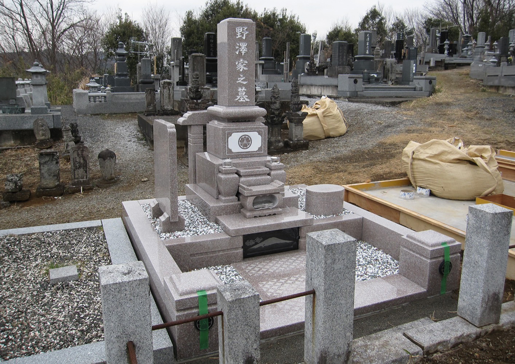 墓石・墓誌の彫刻や加工、現地基礎工事を施工した後、お墓建立の据付工事を行ないます。